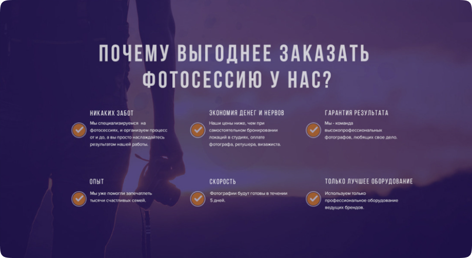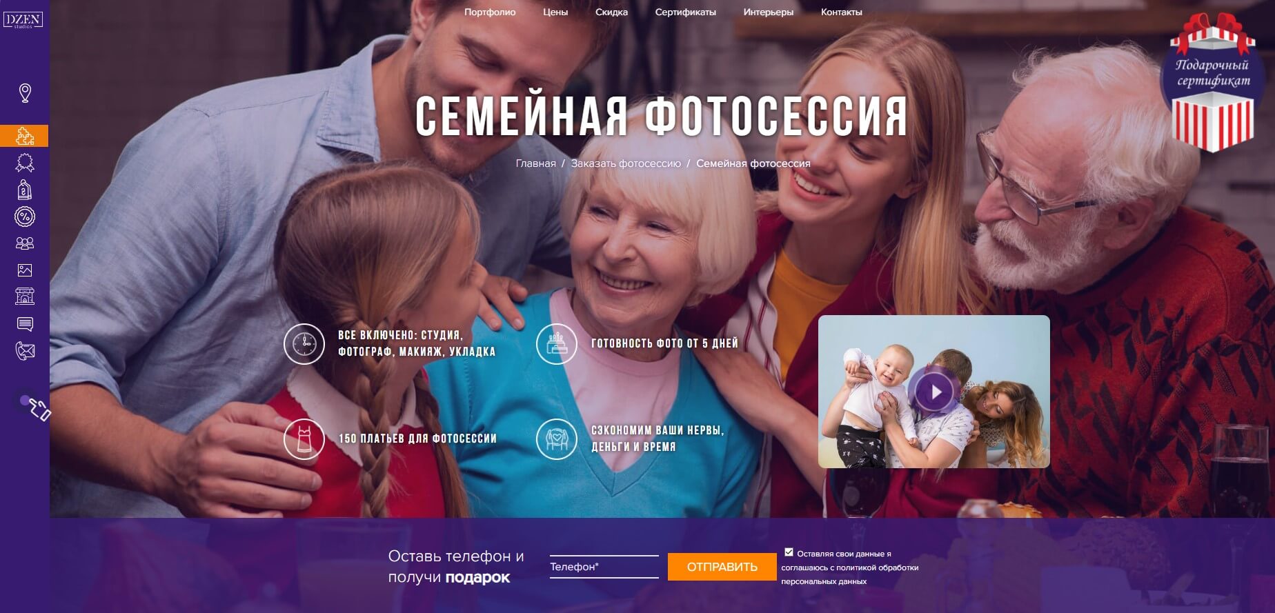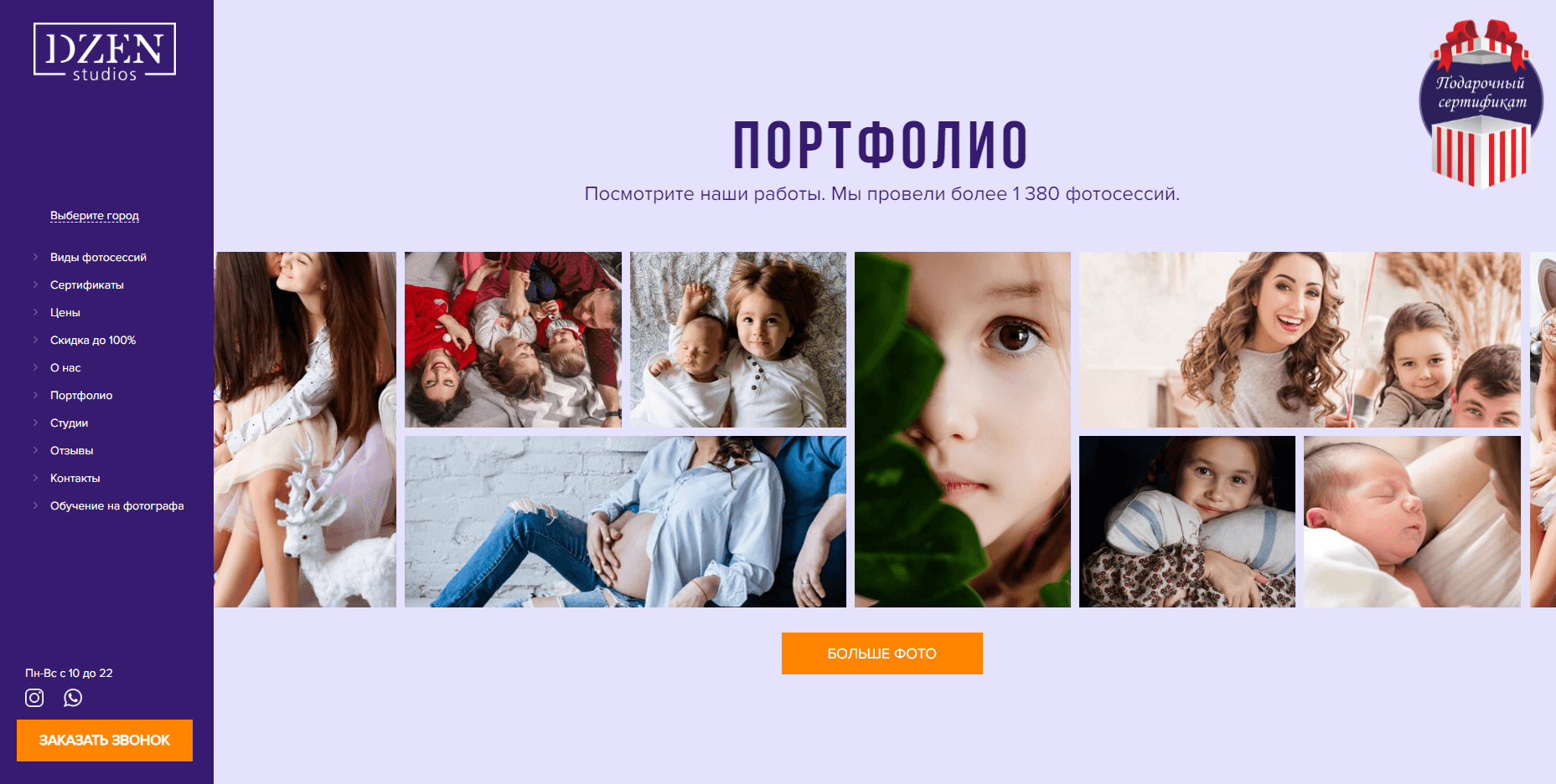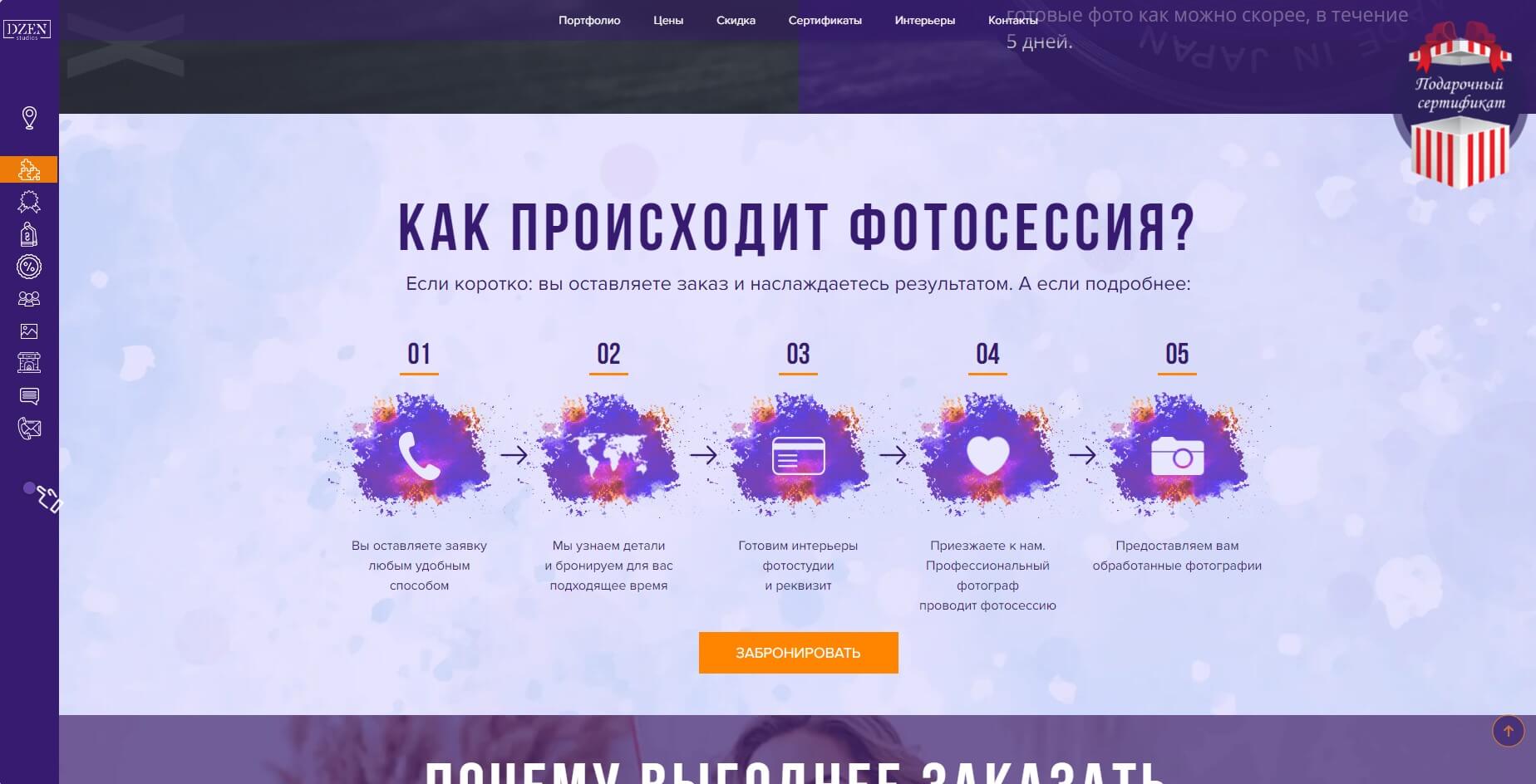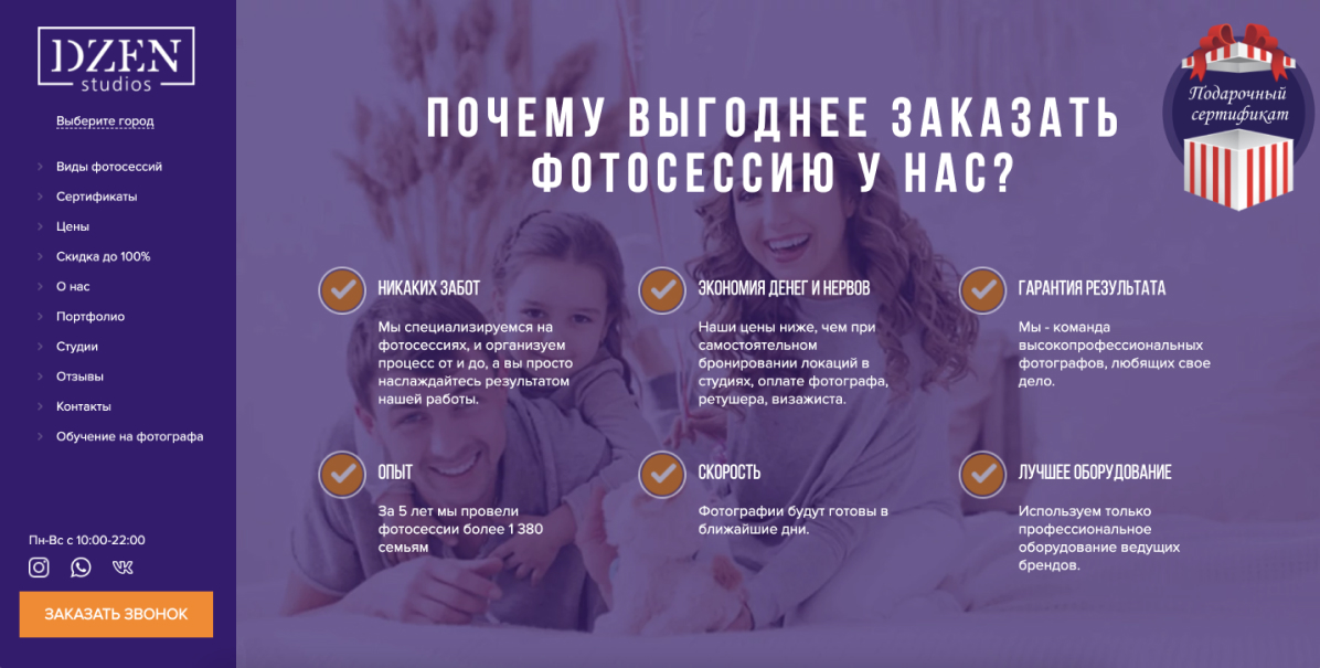 The site of a company that organizes photo sessions in many photo studios. A modern design with elements of animation with a focus on the user's action to make a call has been implemented. Integration with the popular free CMS system WordPress, in which all content is easily edited without additional involvement of programmers. All necessary services and channels for marketing are set up, basic technical SEO settings are made for faster indexing of the site by search engines.