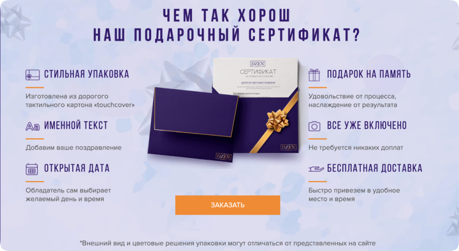 The organization offers the opportunity to gift another person a certificate for its services, presented with a beautifully designed envelope and invitation